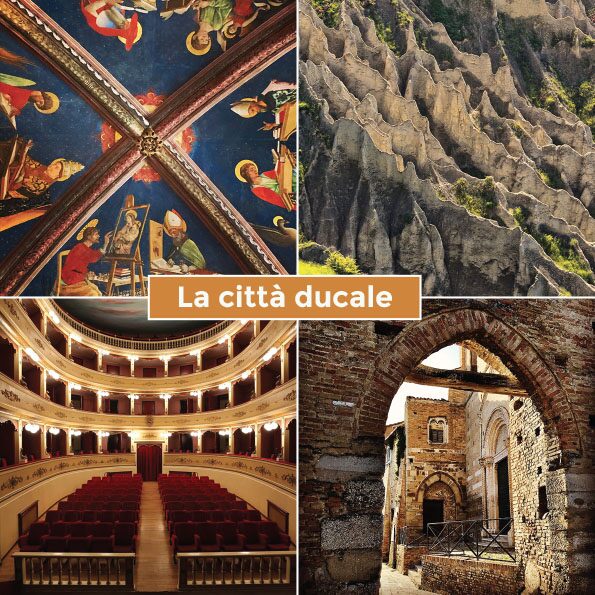 Atri, città d’arte, è un’importante località per storia, cultura e natura. Il suo simbolo è l’imponente Basilica Cattedrale (sec. XIII), uno dei templi romanico-gotici più importanti dell’Italia centro-meridionale, al cui interno è presente il più celebre ciclo pittorico del Rinascimento abruzzese ad opera del De Litio (sec. XV). Lungo il lato sinistro dell’edificio si trova una delle sette Porte Sante italiane legittimate da bolla pontificia, aperta ogni anno in agosto in occasione della festa dell’Assunta. L’apertura della Porta Santa, sia per Atri che per L’ Aquila, rappresenta un rito unico al mondo fuori le mura di Roma e dal 2012 si è voluto rafforzare il legame tra le due città abruzzesi. Il 12 parte da L’ Aquila la Fiaccola della Perdonanza per giungere in Atri la sera successiva. Con questo suggestivo e importante segno che indica la necessità di rimuovere il peccato che è l’ostacolo presente in ciascuno di noi, iniziano le celebrazioni della Perdonanza. Altri siti d’interesse sono il Palazzo Acquaviva con le sottostanti Cisterne romane, ex Scuderie; il Teatro Comunale di fine ‘800; la Riserva Naturale Regionale dei Calanchi di Atri, impressionanti forme di erosione dinamiche, risalenti a 2 milioni di anni fa.